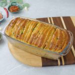 -Stack them on each other and place them one by one in a greased 4 x 9-inches bread loaf pan (curve side upwards).