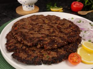 -In a frying pan,add cooking oil,place kabab on frying pan,press and spread evenly & cook on low flame for 4-5 minutes each side (makes 3).