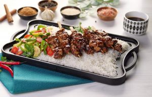-Place skewers on grill rack & place the grill rack on glass tray inside microwave.