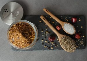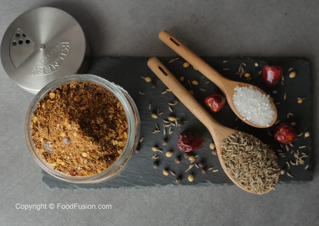 Spice mixer mein roasted spices,tatri,namak,amchor powder aur kala namak dal dein aur blend ker ka fine powder tayyar ker lein aur bowl mein nikal lein.