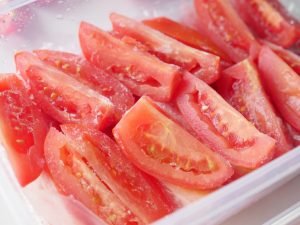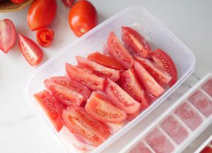 Freeze tamatar ko pani mein skin thaw kernay kliya 5-10 seconds kliya dip ker ka skin ko nikal lein.
