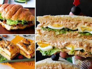 -Apply butter on both sides & toast on low flame from both sides until golden & crispy (makes 2-3 sandwiches).