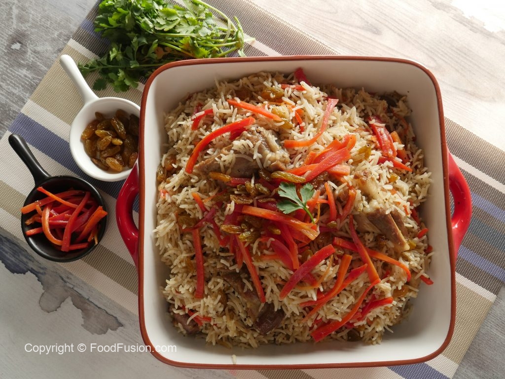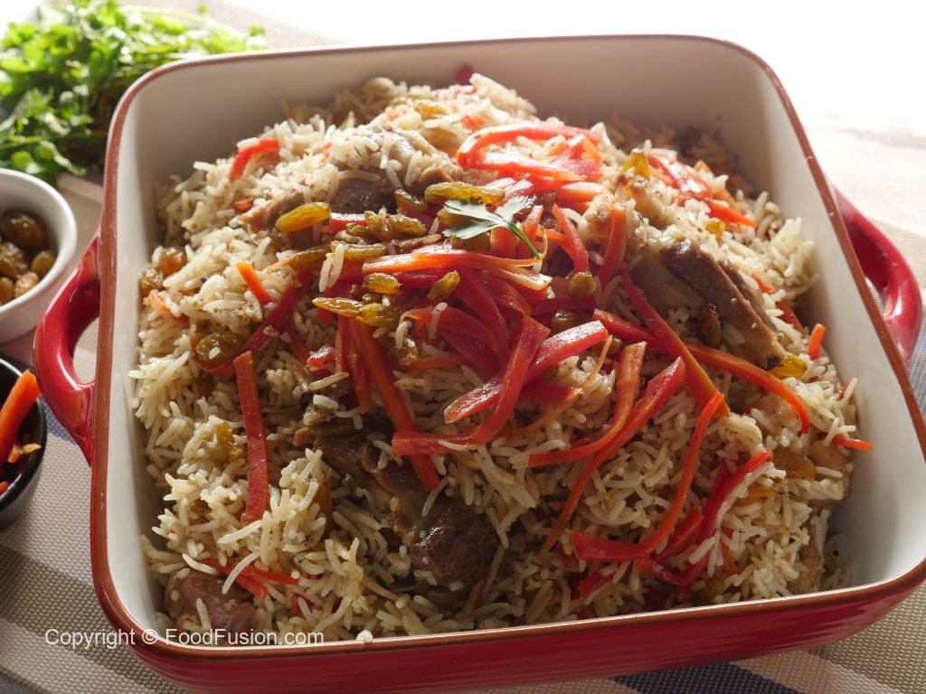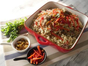 Add remaining spice mix to taste,fried raisins and fried carrots.