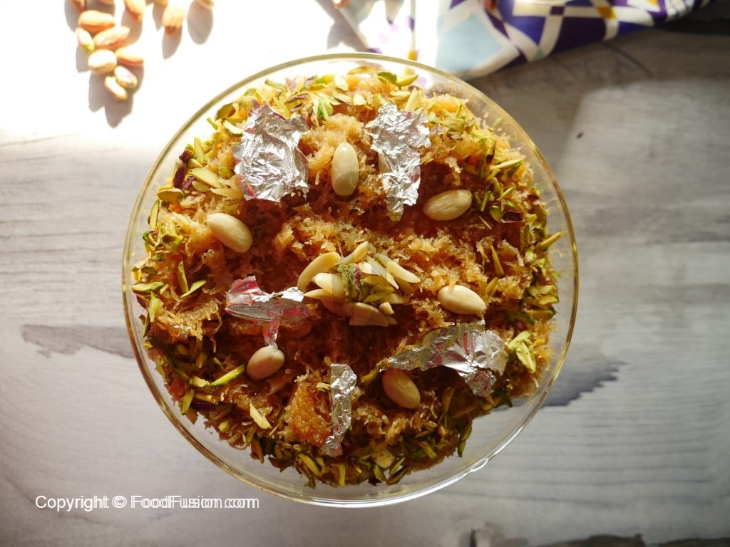 Badam aur chandi ka warq sa garnish ker ka serve karein.