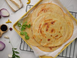 -Heat griddle & fry paratha on medium flame from both sides with clarified butter.
