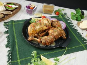 -Place steam rack & marinated chicken & apply remaining marinade with the help of brush,cover & cook on medium flame for 4-5 minutes then steam cook on low flame until tender (20-25 minutes).