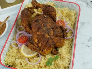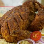 -Lahori chargha ko chawal aur salad ka saath serve karein!