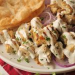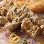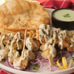 -Drizzle creamy garlic sauce over malai tikka bites,sprinkle fresh coriander & serve with puri paratha, green chutney & onion rings.