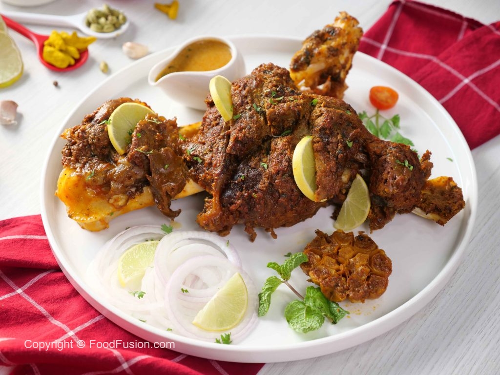 -Remove fat layer from mutton leg & make deep cuts with the help of knife.