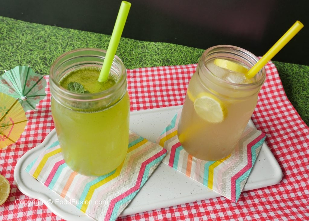 Blender jar mein ice cubes,podina,kala namak,tayyar lemon squash aur soda water dal ker ache tarhan blend ker lein phir strain ker ka serve karein!