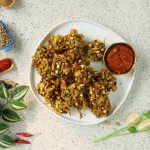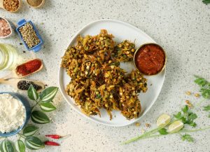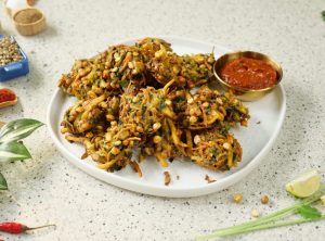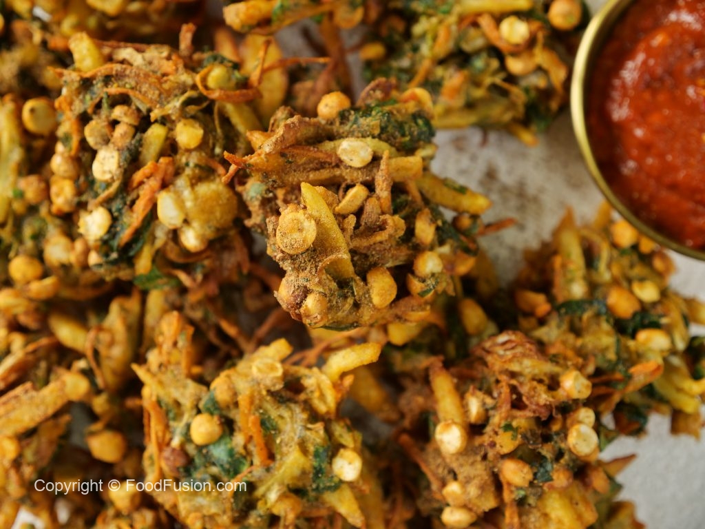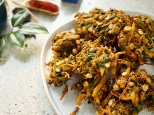 -Add prepared pakora batter & mix well.