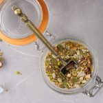 -Add crushed rock sugar,cardamom seeds,silver coated fennel seeds & mix well.