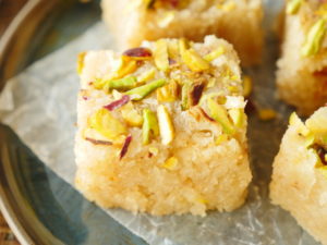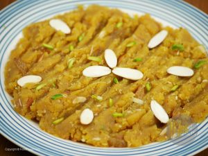 Add pistachio & almonds,mix well and fry on low flame for 2 minutes.