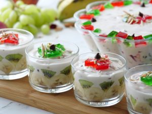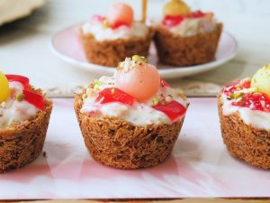 In serving dish,add topping layer,prepared vermicelli and topping.