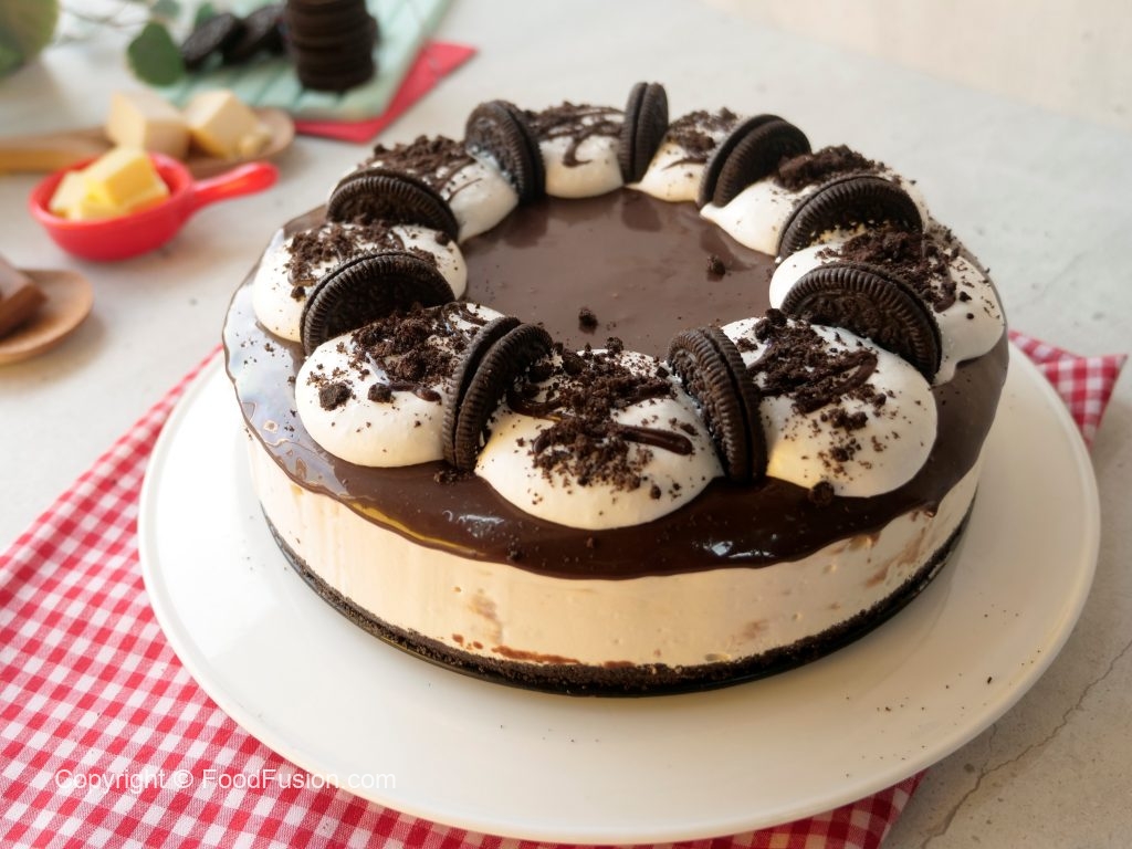 Make the most of this festive season with this No bake Oreo Chocolate Cheese Cake recipe. #HappyCookingToYou #FoodFusion #OlpersCream