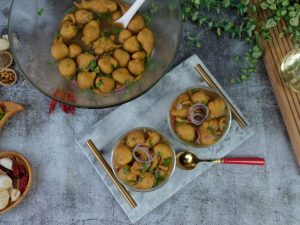 -Pyaz rings,hari mirch aur hara dhania dal ker gently mix ker lein & serve karein!