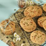 -Take a small dough (50g),make a ball & press gently to make a cookie shape & press the cookies on mixed nuts from one side (makes 15).