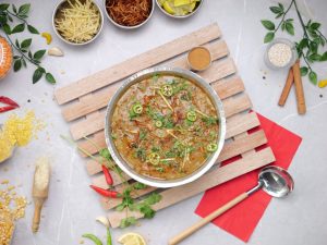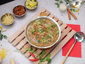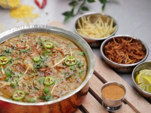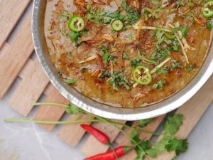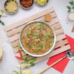 -Garnish with tarka oil,ginger,fried onion,mint leaves,fresh coriander,chaat masala,green chillies & serve!