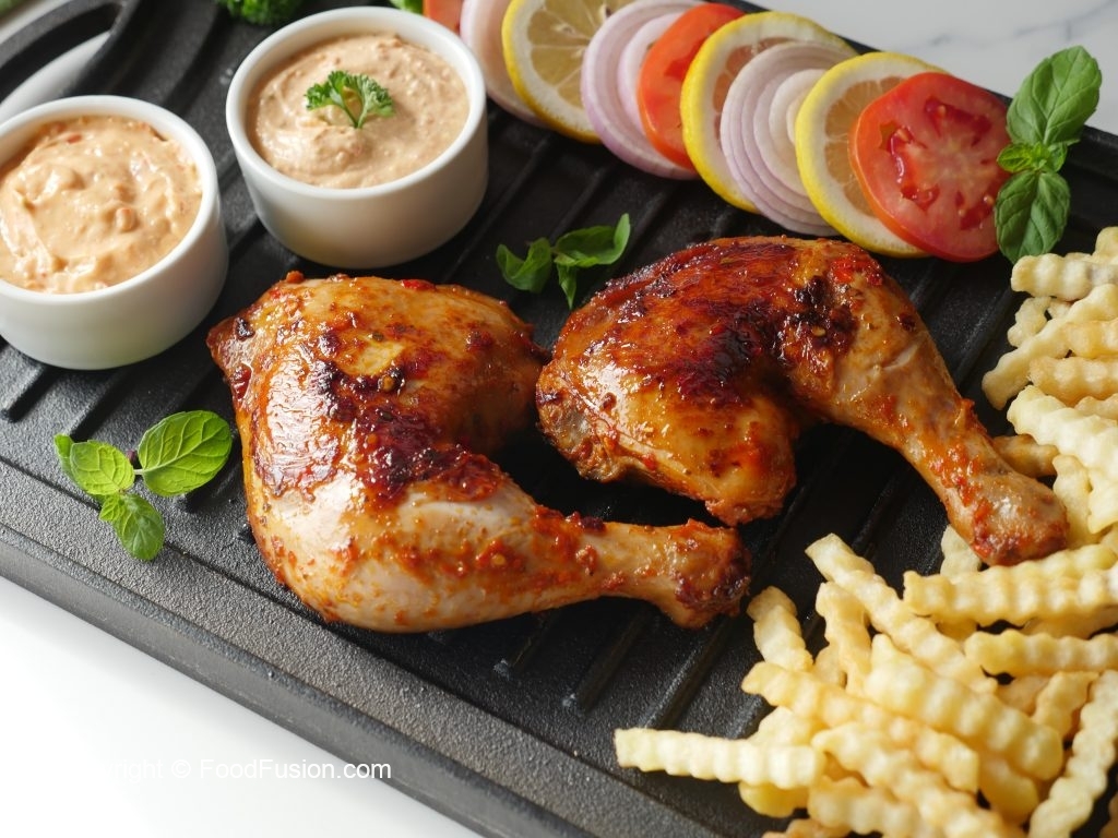 Yogurt peri peri sauce & mayo peri peri sauce ka saath serve karein!