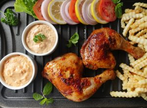 Serve with yogurt peri peri sauce & mayo peri peri sauce!