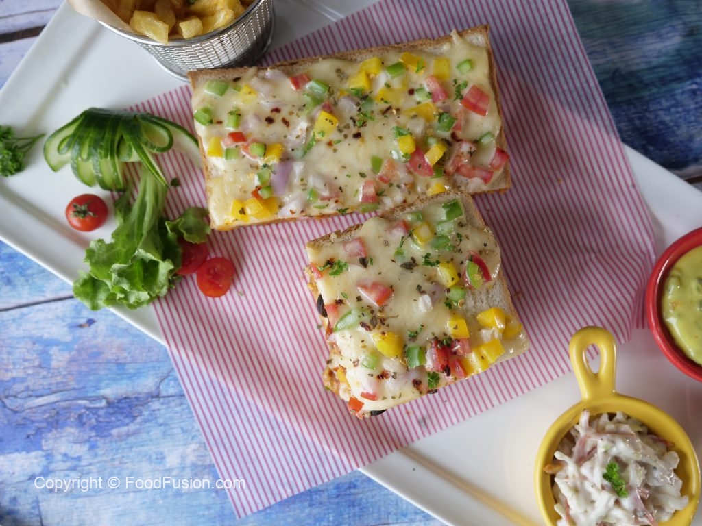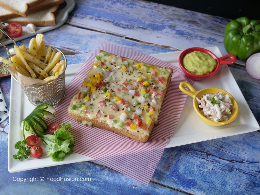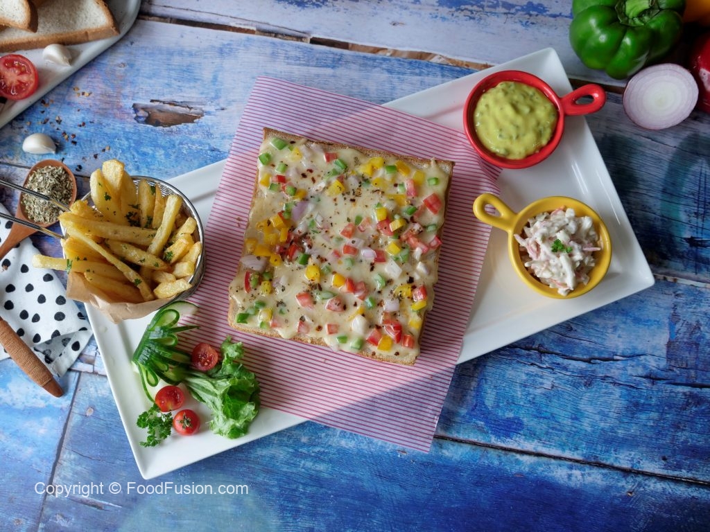 A quick and Easy Pizza sandwich without oven. This is a perfect quick snack recipe for your family. #HappyCookingToYou #FoodFusion