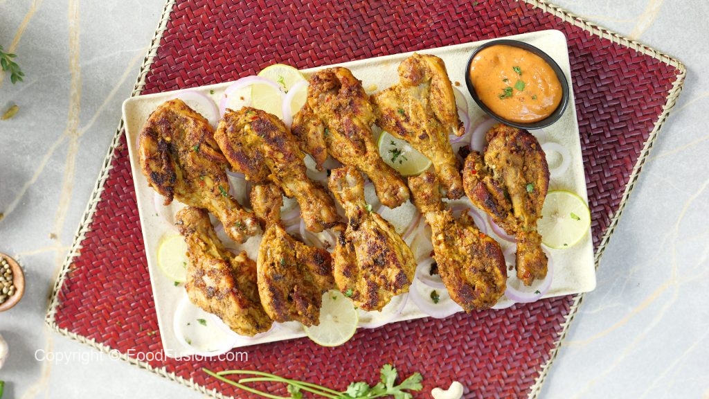 -Chicken drumsticks mein vertically deep cut laga lein aur butterfly ki tarhan open ker lein & side per rakh dein.