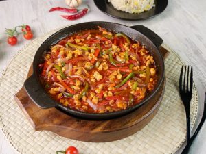 -Sizzler pan ko garam karein aur qeema manchurian dal ker fried rice ka saath serve karein!