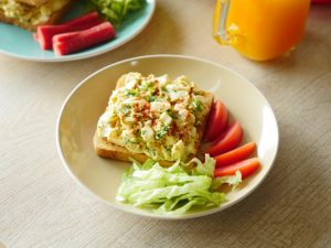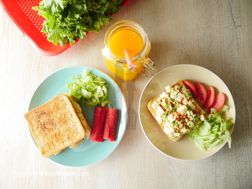 Toasted bread slice per mixture ko spread karein,paprika powder chirak ker hara dhania dal dein & serve karein.