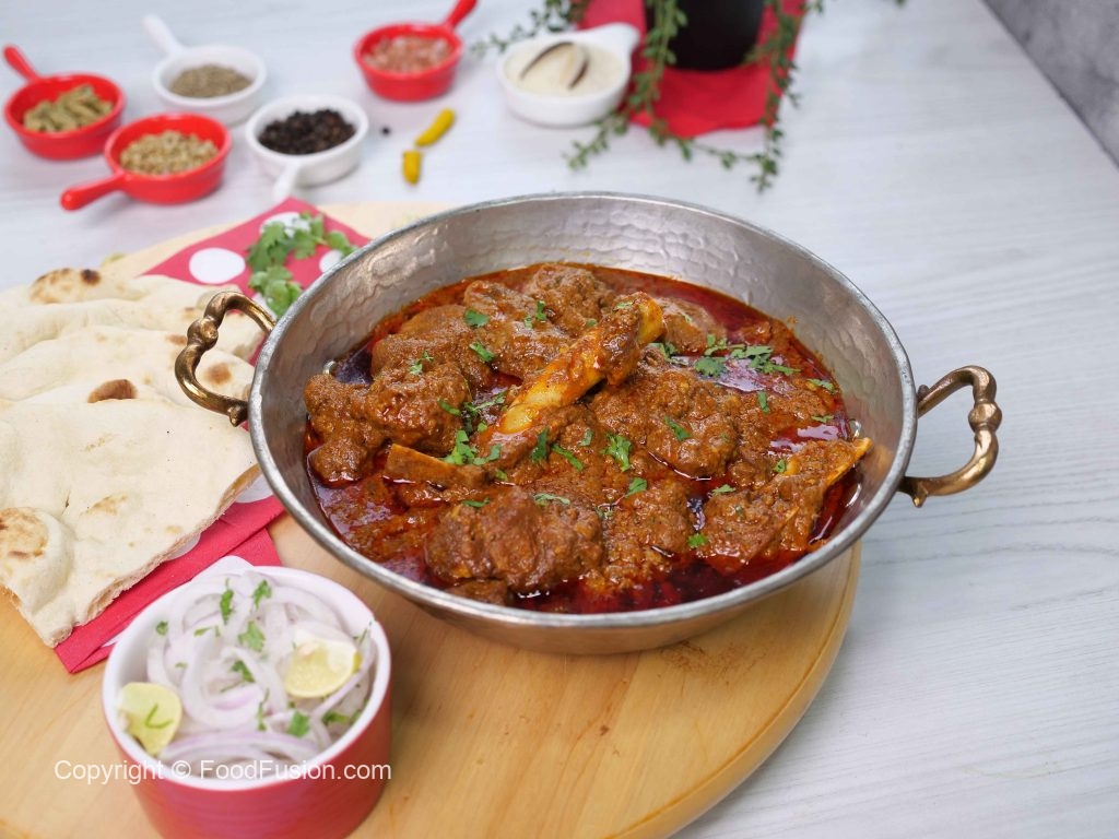 -Heat diffuser/flat griddle (tawa) rakh dein phir dhak ker halki ancch per gosht gul janay tak paka lein (45-50 minutes),bech mein check ker lein aur agar zarorat ho tou pani shamil ker lein phir tez ancch per oil alag ho janay tak paka lein.