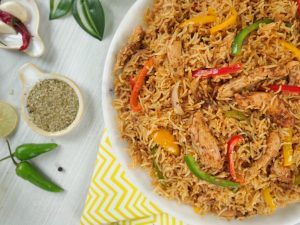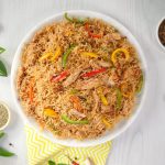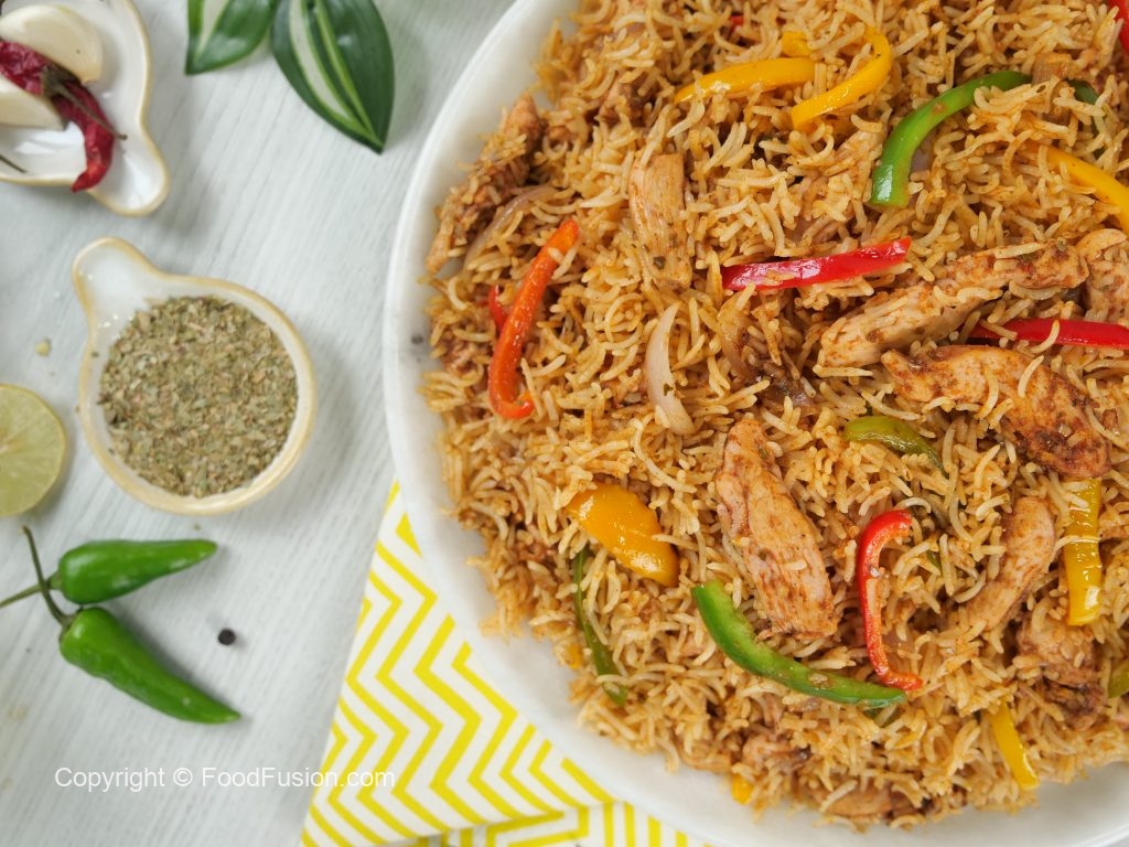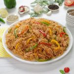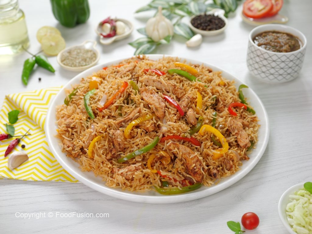 Restaurant-style Chicken Fajita Rice, with juicy chicken, vibrant peppers, and aromatic rice served with a delicious roasted tomato sauce; it’s a complete meal that’s bursting with flavors and aroma. #FalakRice #happycookingtoyou #FoodFusion #pakistanicooking #araywahh #digitalammi