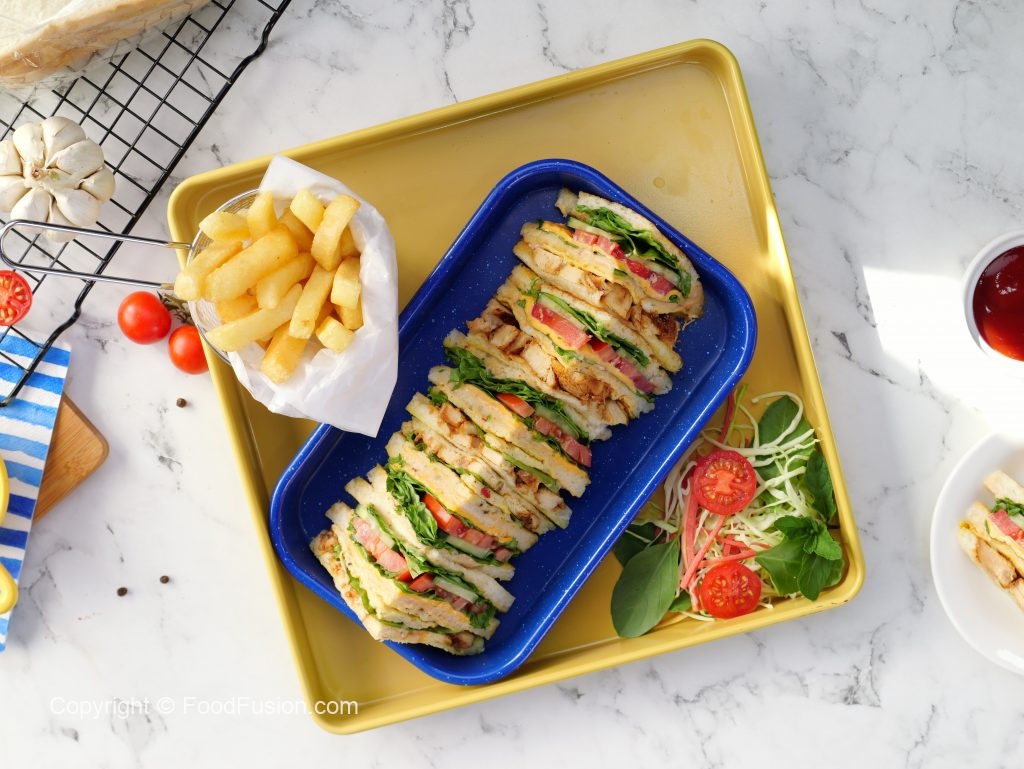 Make Restaurant style Club Sandwich at home with this complete step by step recipe. #HappyCookingToYou #FoodFusion #digitalammi #ramadanrecipes #NurpurButter #butterfly