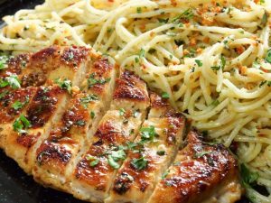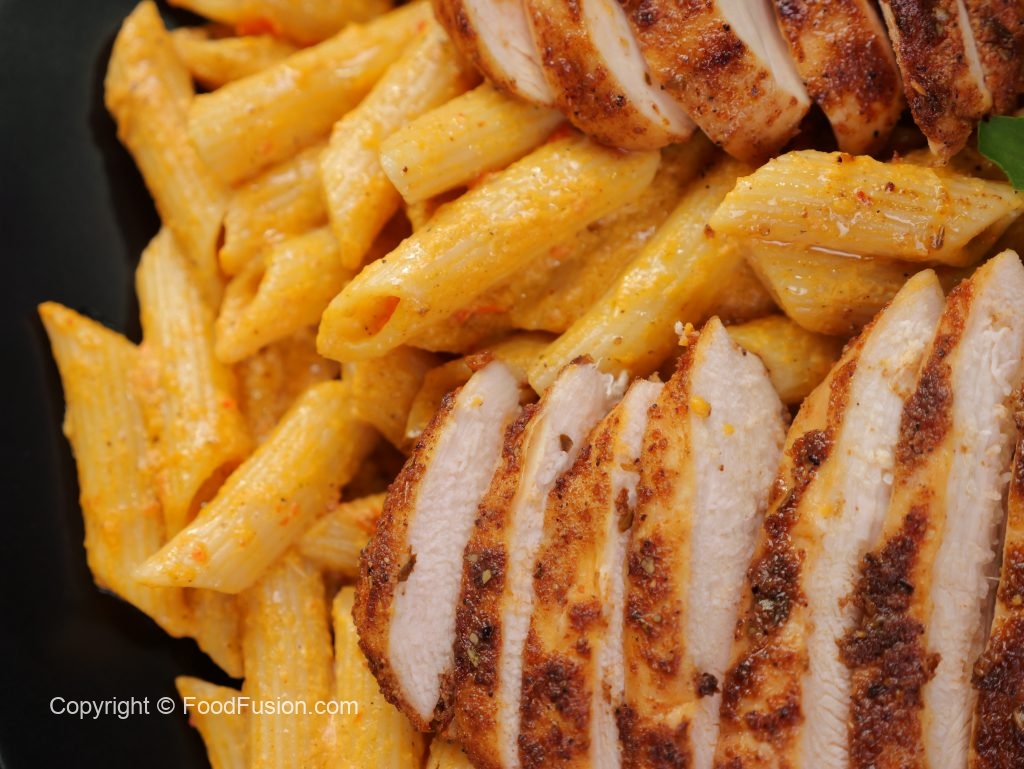 -In a cast iron pan,add cooking oil,seasoned chicken fillets & cook on low flame for 3-4 minutes then flip,cover & cook on low flame for 3-4 minutes.