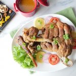 Bake in preheated oven at 180 C for 1 hour & 15 minutes then grill (uncovered) in preheated oven at 180 C for 20 minutes each side.
