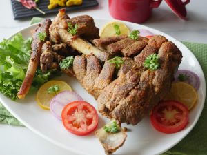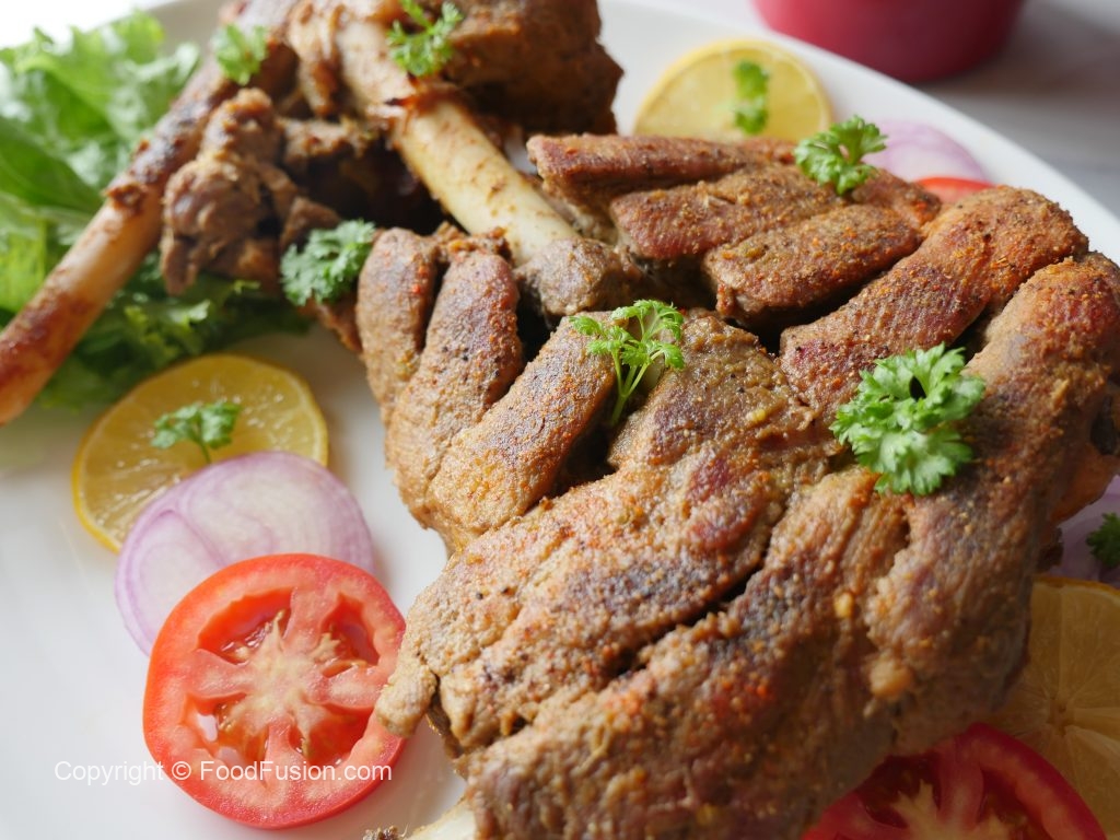 Mutton leg ko prick ker ka marks/cuts laga lein.