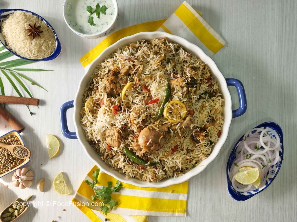 -In a bowl,add fried onion,tomatoes,green chillies,lemon slices,dried plums,mint leaves,fresh coriander,cumin seeds,biryani masala,mix well & set aside.