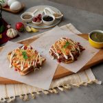 Place tomato slices,onion rings,mozzarella cheese & drizzle tomato ketchup.