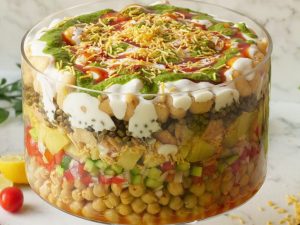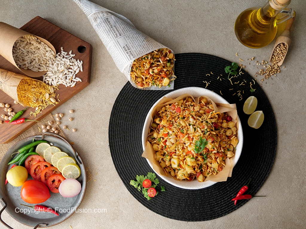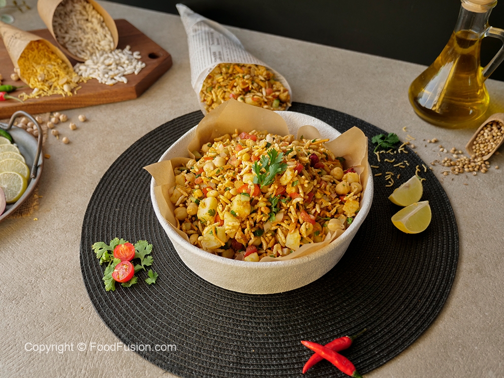 Bowl mein roasted murmuray,kheera,pyaz,safed chanay,tamatar,aalo,hari mirch,adrak,nimco mix, achar ka tail,tayyar spice mix,hara dhania aur lemon juice dal ker ache tarhan mix ker lein.