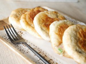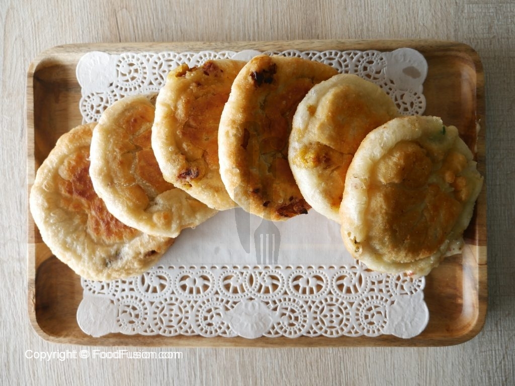 In frying pan,add oil and stuffed filled doughs & press down to form a flat round and fry from both sides.