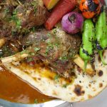 -Seared mutton shanks wapas pot mein daal kar chicken stock add karein, boil aane tak cook karein, phir cover kar ke low flame par 3-4 ghantay tak ya jab tak tender ho jaye cook karein.