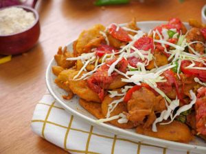 -In the same cooking oil (180 C), add tomato slices & green chilli slices, fry on high flame for 1 minute.