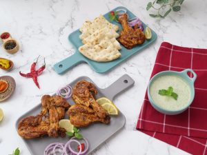 -Chicken drumsticks ka center mein vertically deep cut laga lein aur butterfly ki tarhan open ker lein.
