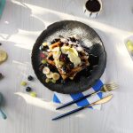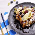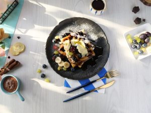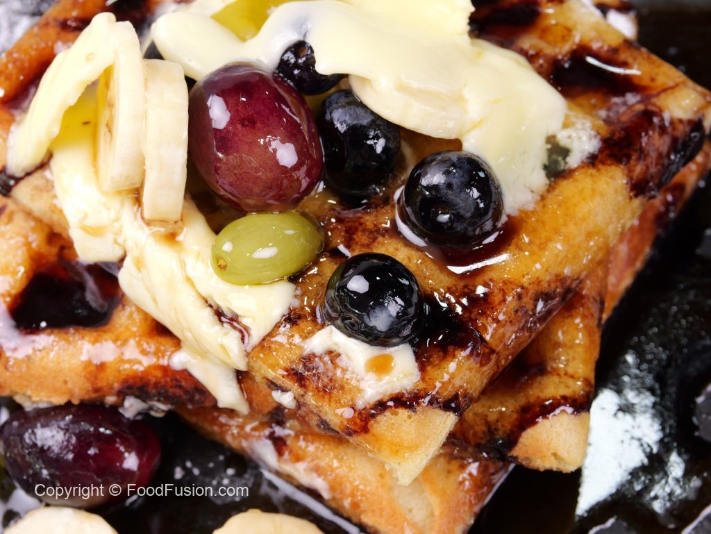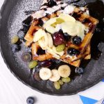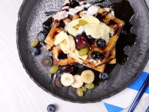 -Waffles per cheeni aur chocolate syrup dal dein.