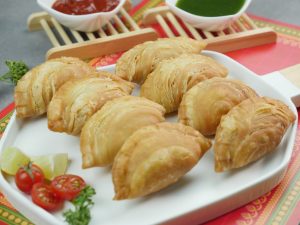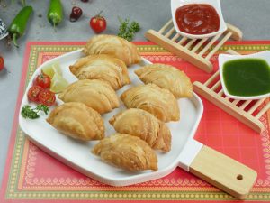 In a wok,heat cooking oil & fry samosa on low flame until golden & crispy.