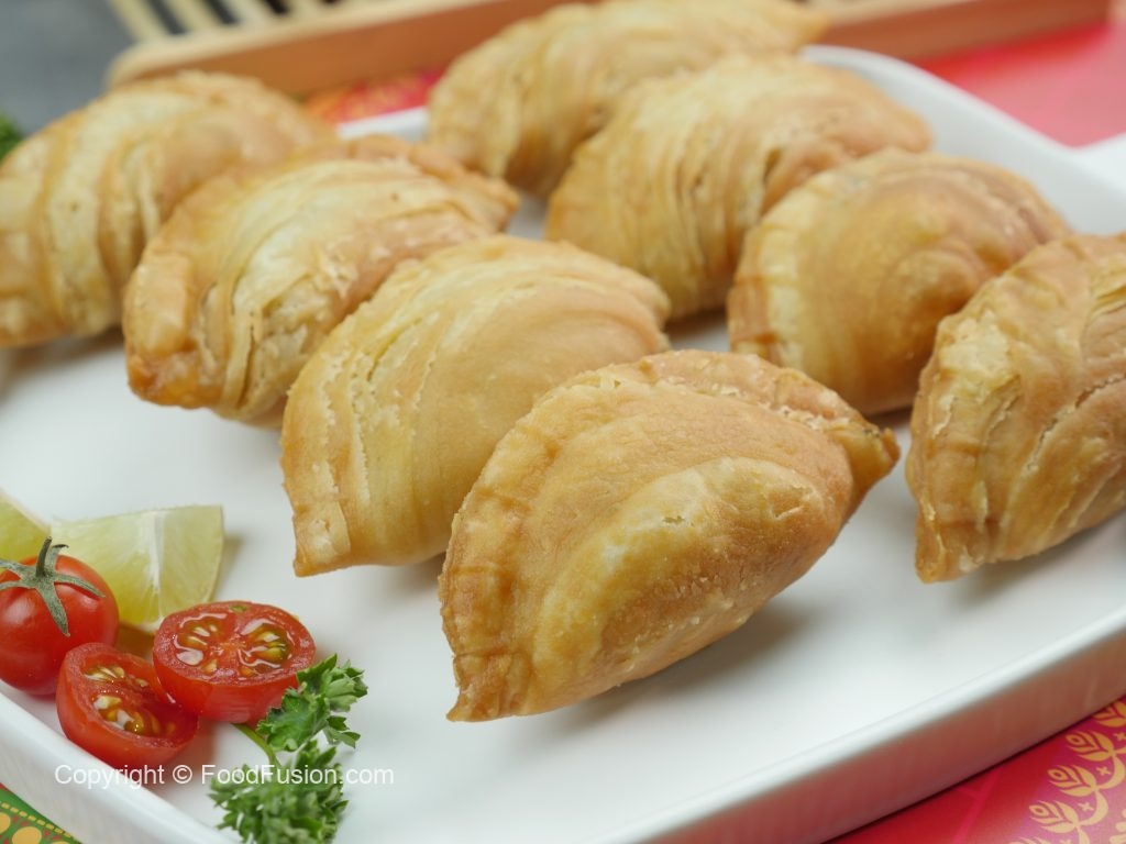 Place the dough on samosa maker,add prepared chicken filling in center,apply water on the edges,press & close samosa maker to make samosa and remove extra dough (makes 24-25).