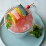 Serving glass mein ice cubes aur water melon green tea dal ker serve karein!